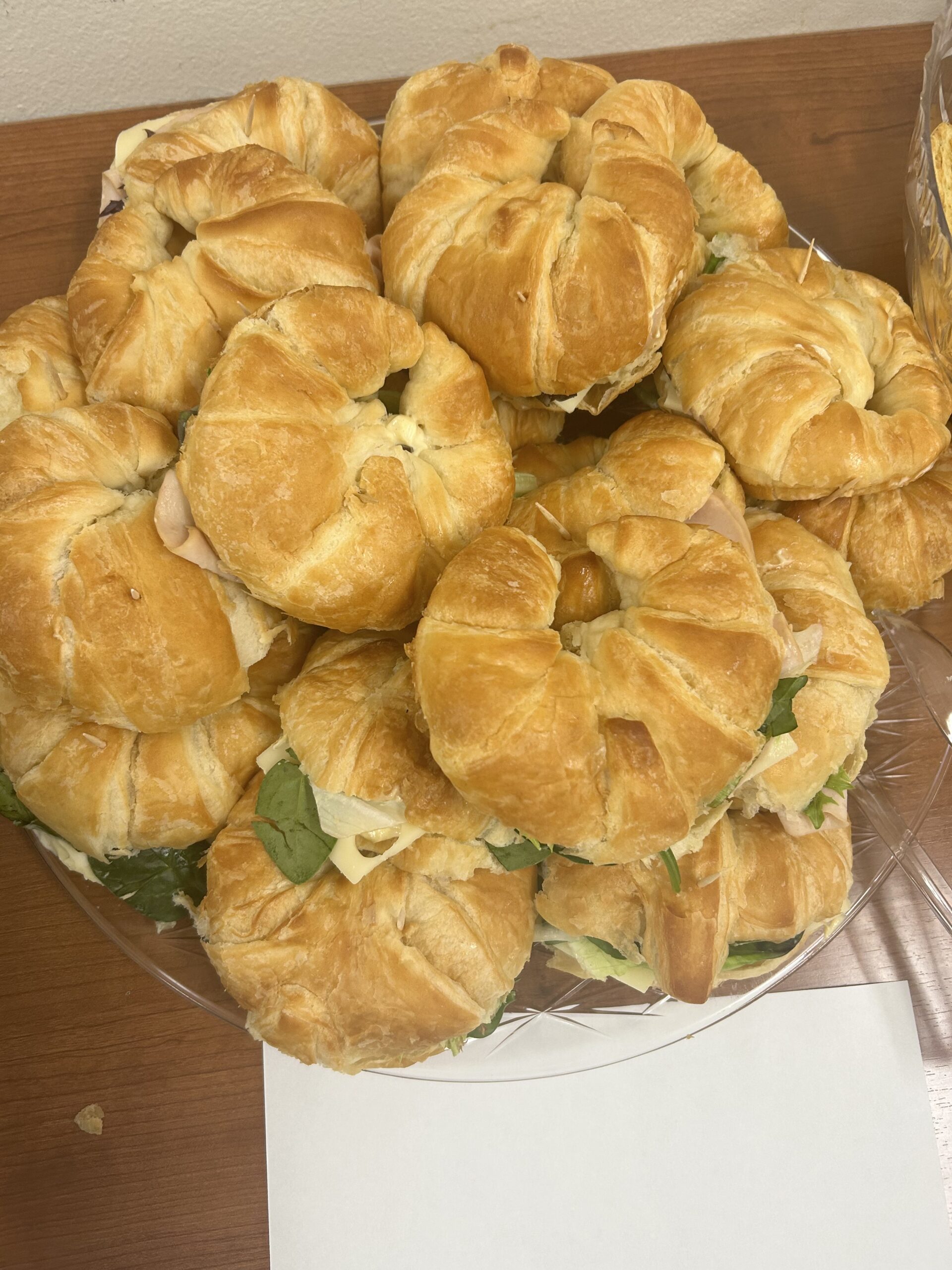 Buttery croissant sandwhich prepared with your choice of meat, swiss cheese, Savory sauce and Arugula.
